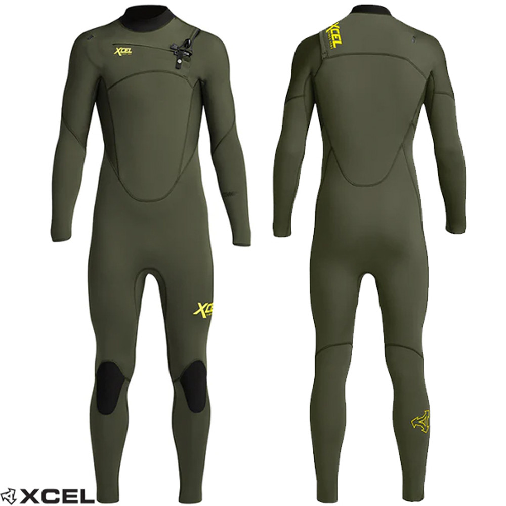 XCEL Youth Boys Comp Steamer 3:2mm | Chest Zip | Dark Forest | Junior Surfing Wetsuits | Surf Wetsuit for Kids