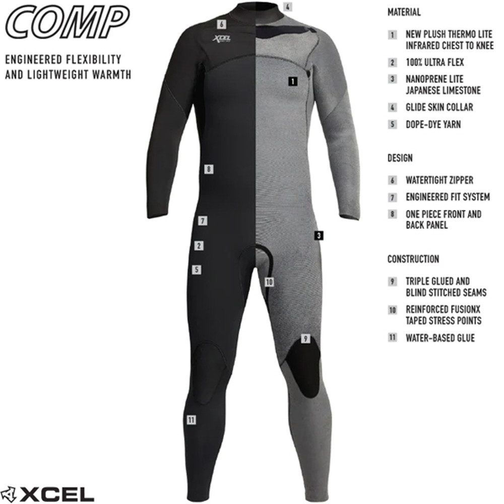 Heren Infiniti Comp 2 mm springpak | X2 borstrits | Gitzwart | Xcel-wetsuits Xcel Infiniti Comp 2 mm springsuit voor heren, ontworpen voor maximaal rekbaar wetsuit, met een groot v...